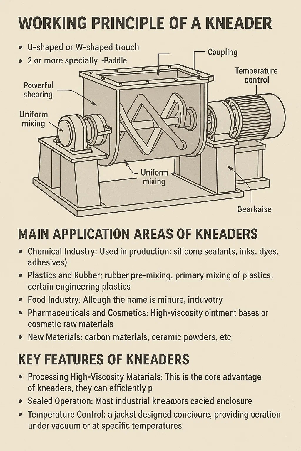 Kneader adalah peralatan utama yang sangat diperlukan di banyak industri berat dan ringan, unggul dalam memproses bahan dengan viskositas tinggi yang sulit ditangani oleh mixer biasa:
